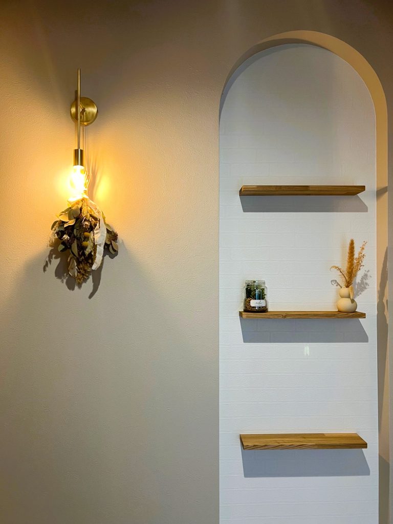 こちらは玄関を入って正面の壁に作ってもらったRニッチです。