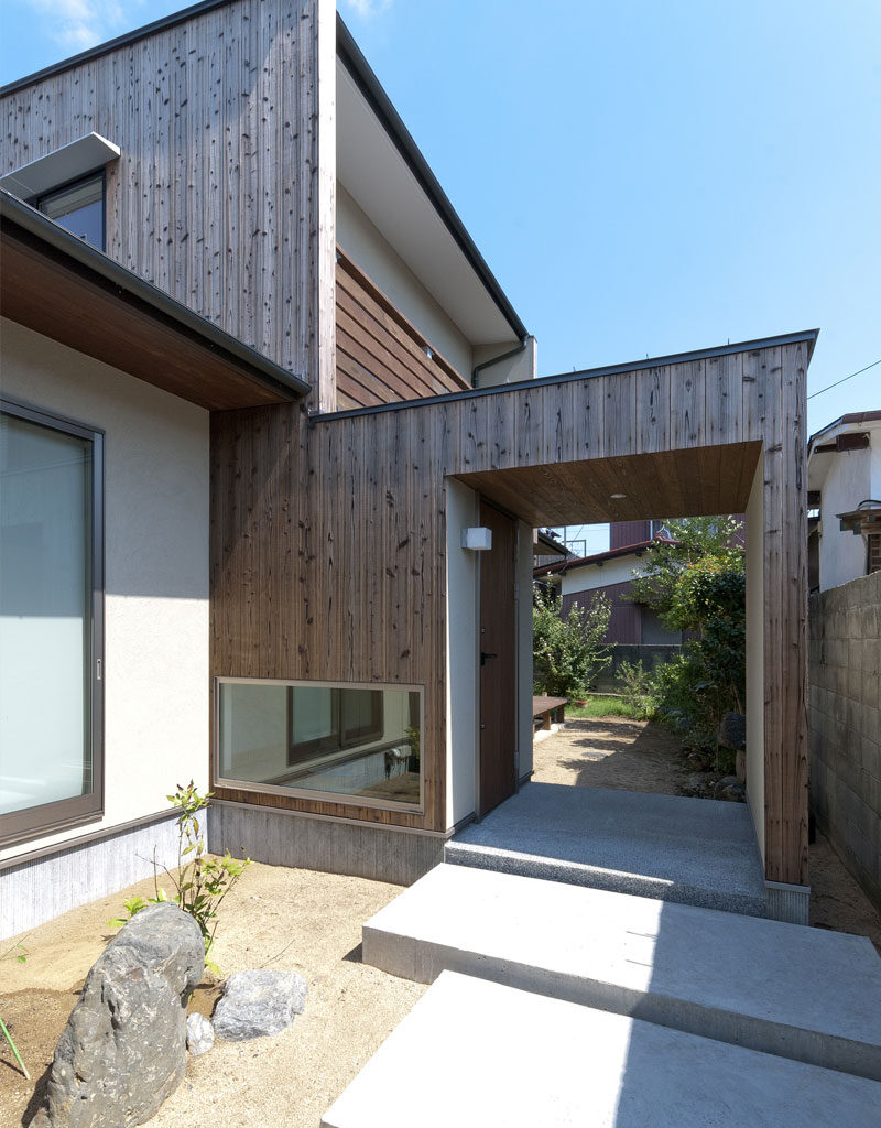 庭に植えられた緑、白い壁、杉板の濃い茶色、それぞれの色、建物の質感や佇まいがバランス良くマッチしています。