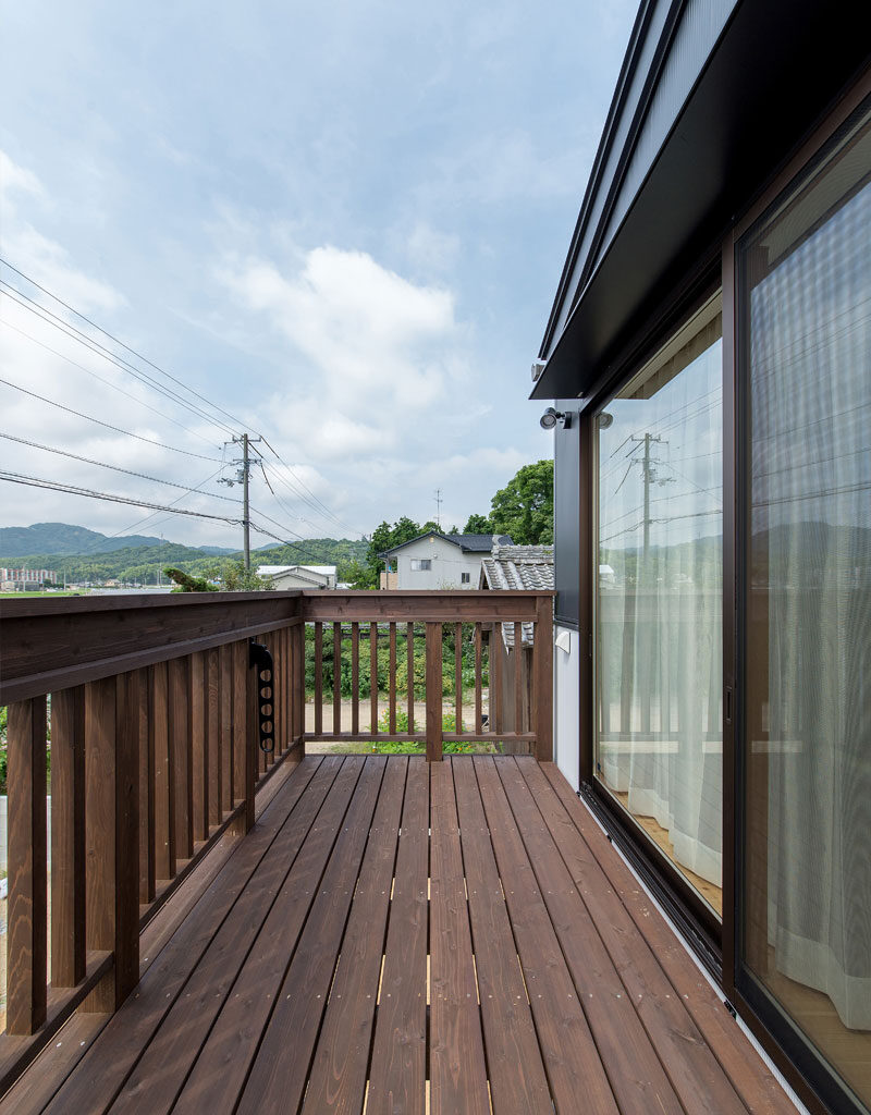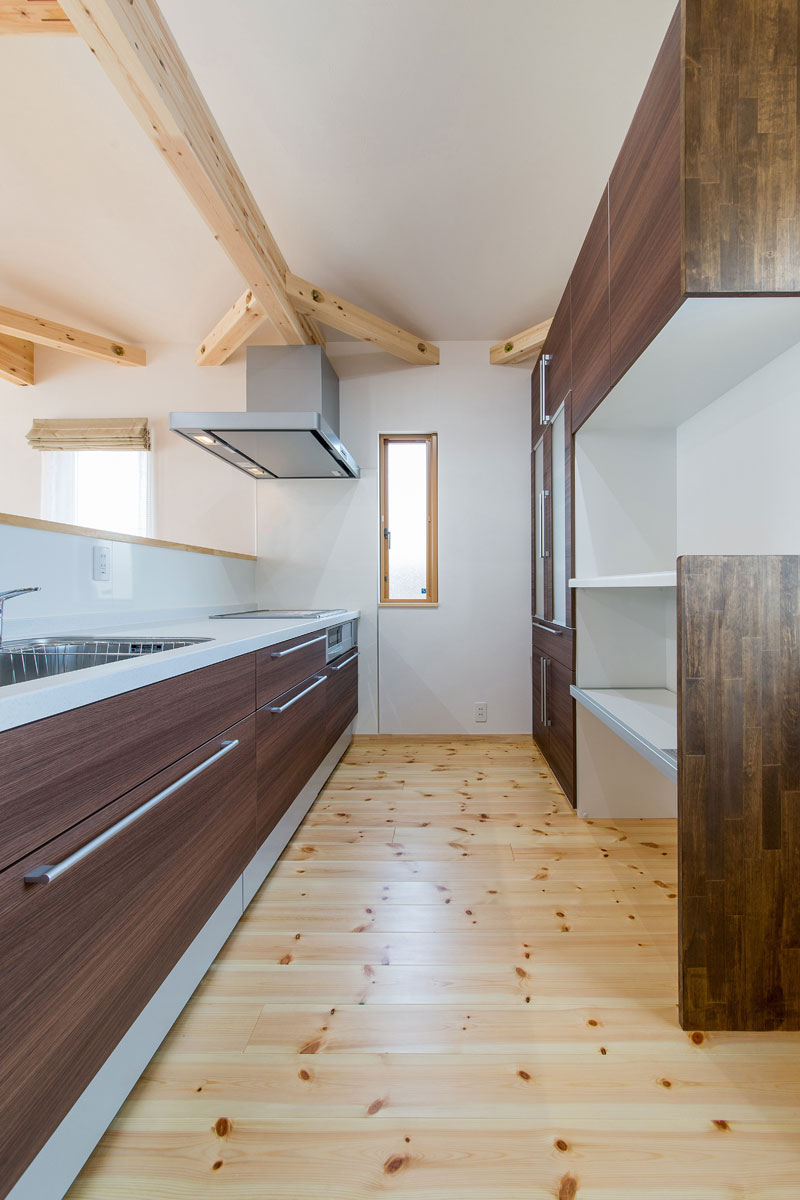 施主様がこだわった外観の色使い。片流れの屋根にすることで吹き抜けある開放的室内空間に。