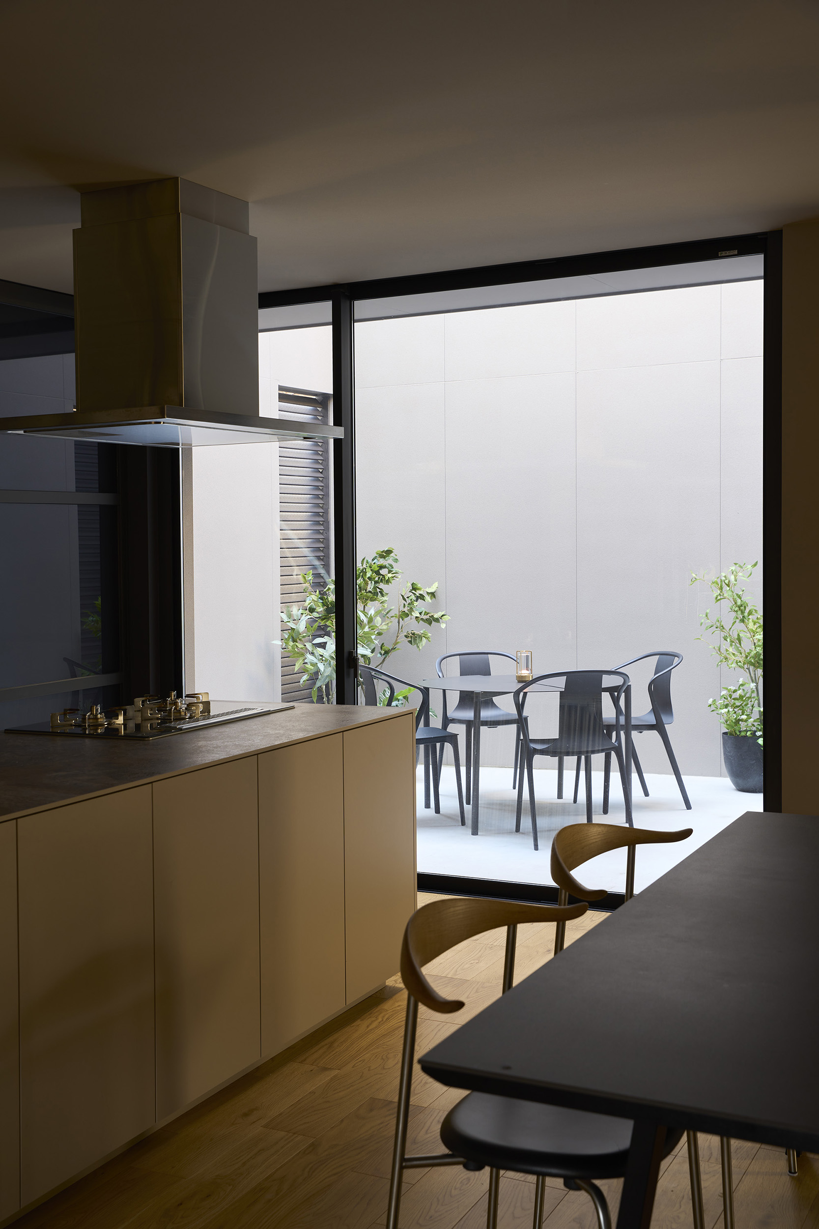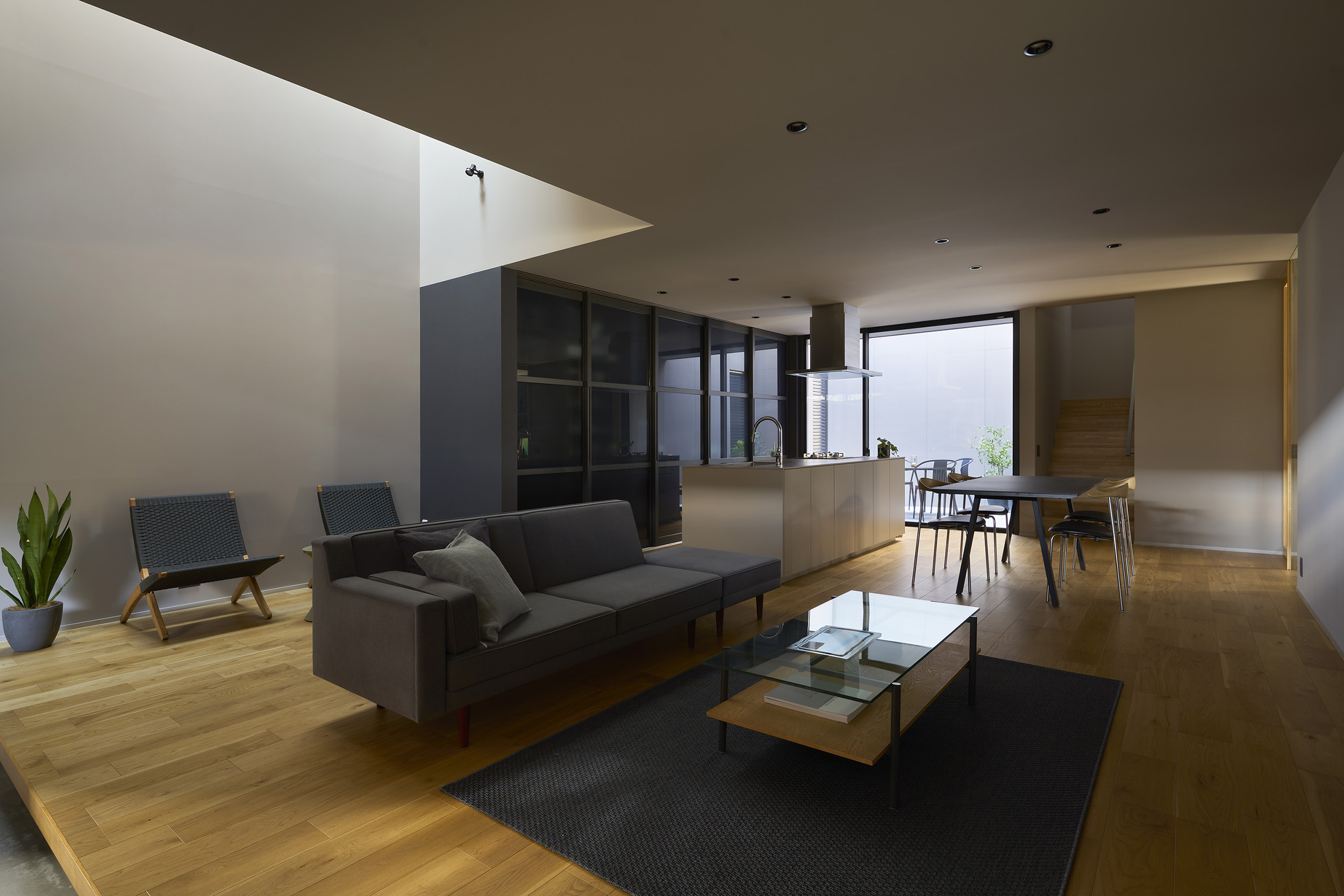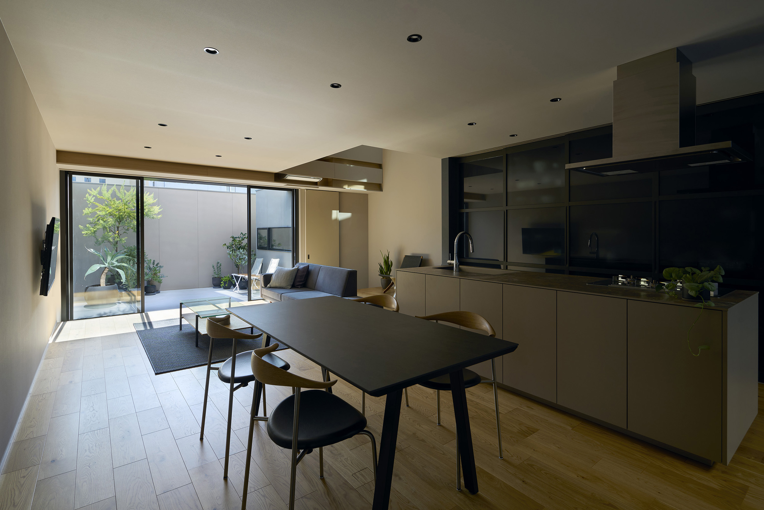 広い2つの中庭にLDKが挟まれており、外観からは想像ができないほど開放的です。