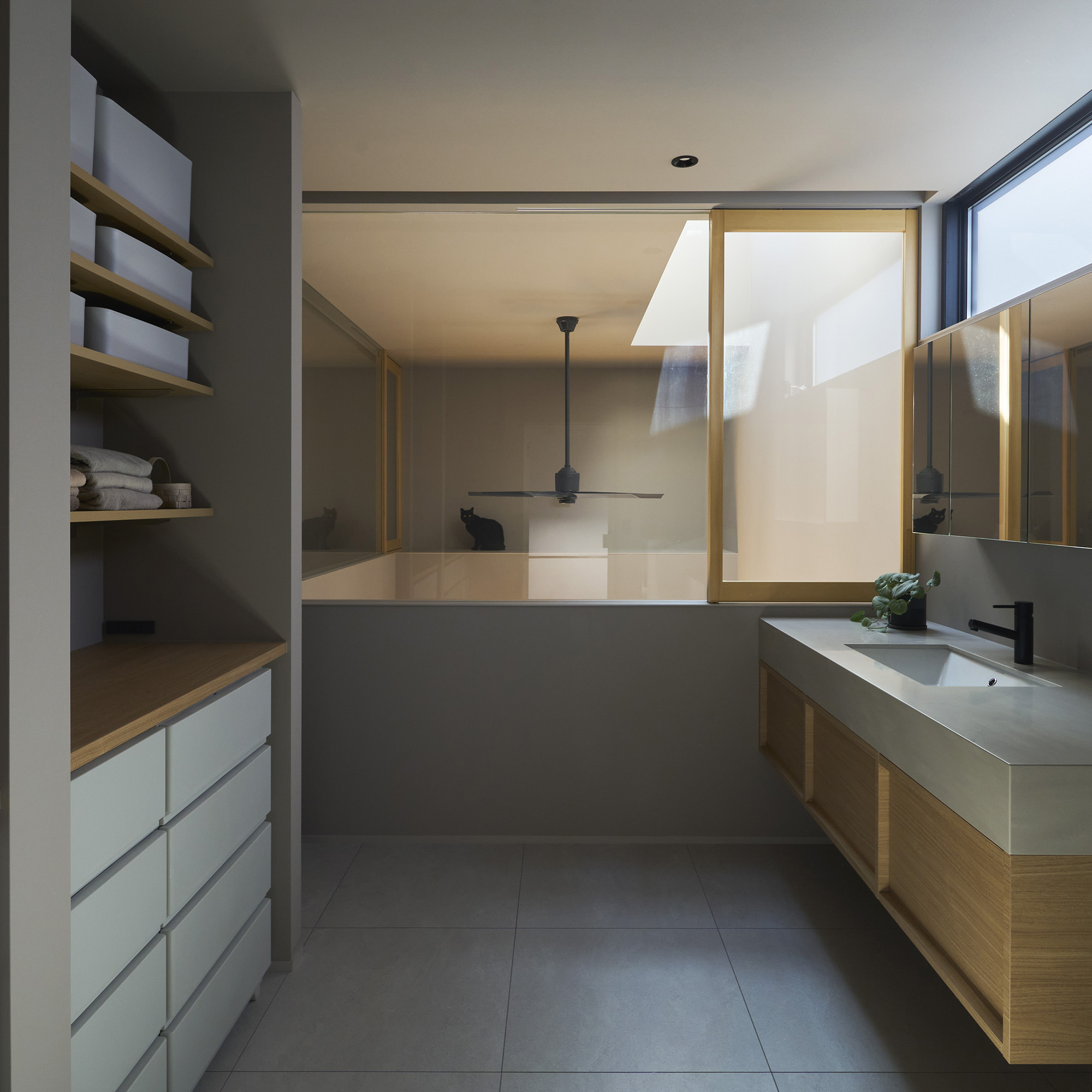 多目的に利用される中庭は、1つの用途としてペット(犬と猫)のくつろげる空間としても利用され、建物内のペットスペースと中庭も一体に利用できるようにも設計されています。